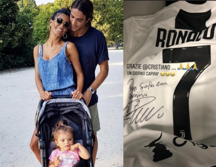 满满的父爱,马特里把C罗签名球衣送给宝贝女儿