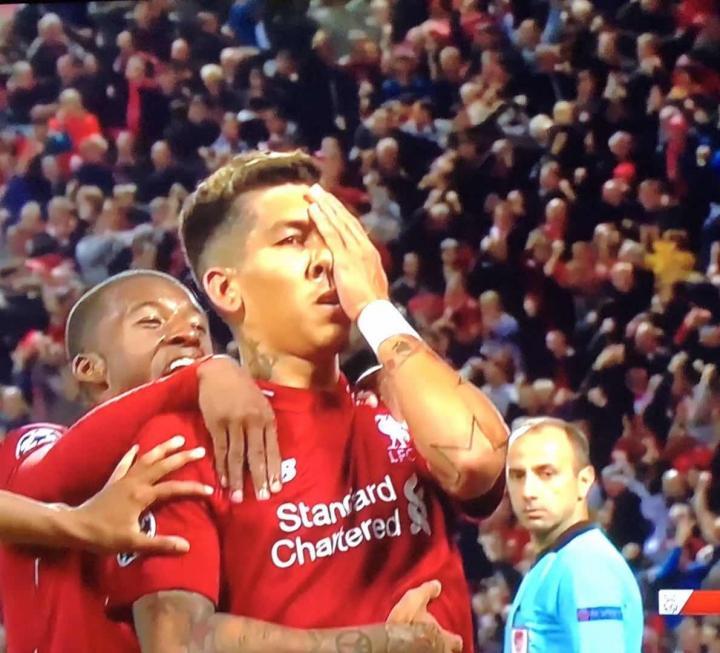 终于,Bobby-夏侯惇-汉尼拔-独眼庆祝无人可复制-菲尔米诺进球了。那一刻,安菲尔德球场仿佛被扔进了一颗炸弹,你拼命呐喊却听不见自己的声音,扯着嗓子唱歌也会立刻淹没在群声合唱之中,分贝指数简直可以一杆子扰民到曼彻斯特。
