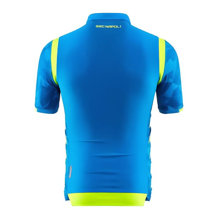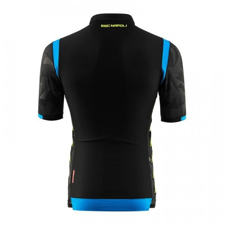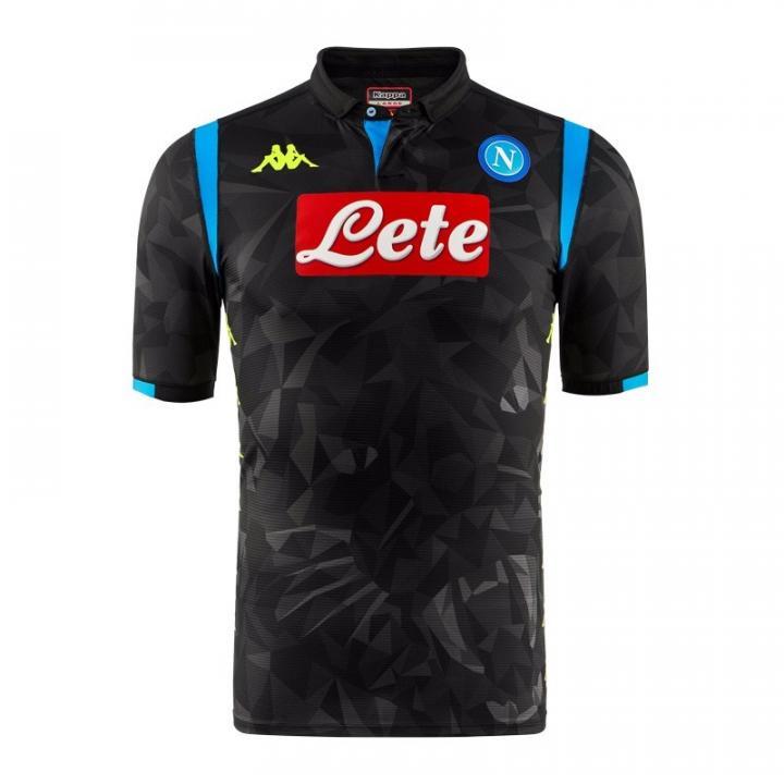 那不勒斯新赛季欧战主客场球衣采用了与联赛版主客场球衣相同的球衣模板打造,保留了用几何花纹组成的咆哮的黑豹的头像,让球衣更具狂野风格。与联赛版本不同的是,欧战主客场球衣胸前以及身体两侧的白色Kappa Logo均改为视觉效果更强的荧光黄色,并且球衣肩部的透气条带则分别采用色彩对比强烈的荧光黄与天蓝色。