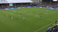 开场1分20秒左右沃特福德赢得一个前场边线球,霍莱瓦斯实行大力边线球战术掷到禁区前沿,由富勒姆球员先争到第一点,随后休斯的上前拼抢夺回球权,和身处人堆中的格雷进行了一个踢墙式二过一,格雷在面对几乎没有防守压力的情况下轻松将球打进取得梦幻般开局。在笔者看来这次防守富勒姆出现了巨大的失误,所有防线球员都只看球不看人,都去盯防持球的休斯和左侧前插的迪尼而没有人及时限制横向移动的格雷,以至于先丢一球。