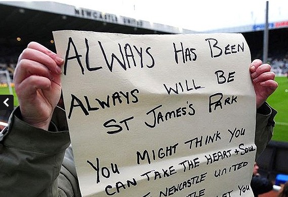 不过不是所有球迷都欢迎老板的企业给自家主场冠名。2011年11月,纽卡斯尔联的圣詹姆斯公园被冠名为体育直销竞技场(Sports Direct Arena),体育直销就是老板阿什利的运动用品零售公司。这冠名让阿什利的罪状又添一条,球迷们对此很愤怒。2012年10月,Wonga成为主赞助商,并购买了圣詹姆斯球场的冠名权,随后Wonga决定将球场名字恢复为圣詹姆斯球场。