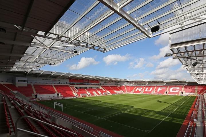 莫克姆(Morecambe)的主场环球竞技场,名字看上去不像是一个被冠名的球场,但其实“环球”是建造这个球场的环球建筑。