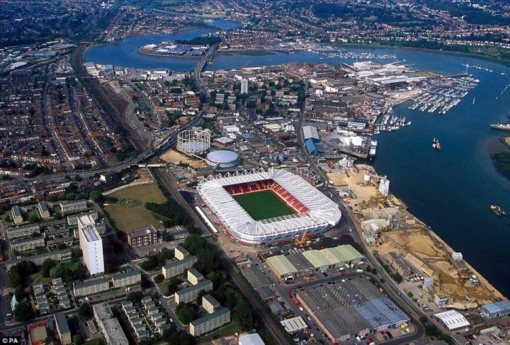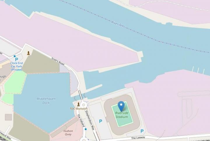 当年米堡为新球场选址时,政府提供了蒂斯河畔米德哈芬这块地,所以球场就建在了蒂斯河畔。后来俱乐部让球迷选择球场名字,河畔球场(Riverside Stadium)这个相当贴切的名字最终胜出。