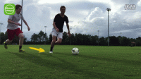 3.立即再用跨步脚外侧将皮球拨向另一个方向。
