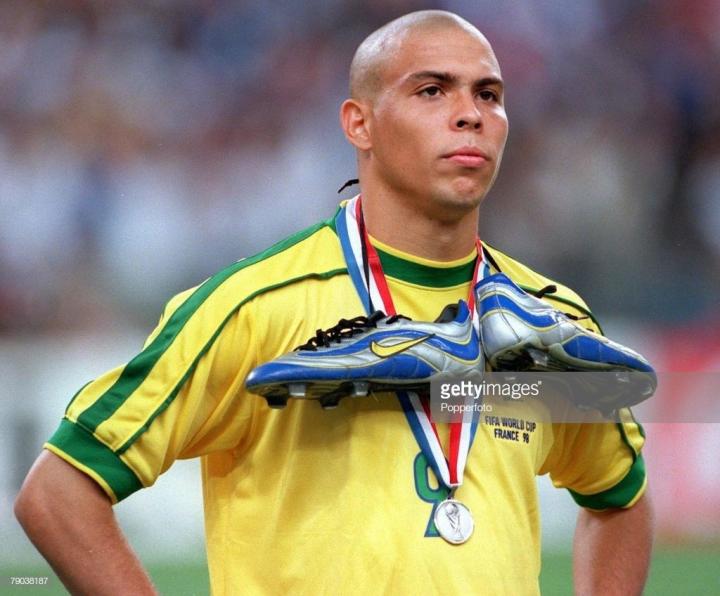 那么这两款水星是何典故,蓝黑色当然是当年也曾发布过的款式,大罗在国米时期使用的国米配色水星。这个配色并非大罗专属,没有r9logo,法国球星吉诺拉也曾使用改款球鞋,但在我们的概念中,这款鞋还是非常可以代表大罗在国米时期的巅峰岁月的一款鞋。