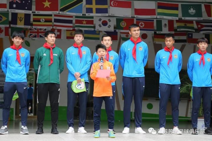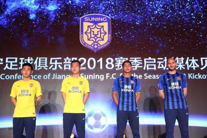 (田依浓(左2)亮相江苏苏宁足球俱乐部)