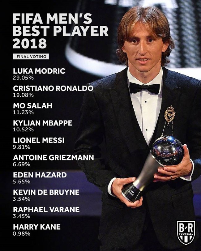 北京时间9月25日凌晨,2018年国际足联颁奖典礼在伦敦顺利举行。在最引人关注的“世界足球先生”(官方名称:国际足联年度最佳男子运动员)环节,克罗地亚国家队和皇马双料中场核心、本届世界杯MVP莫德里奇成功当选,也一举打破了梅罗“二人转”对该奖项长达10年的垄断。