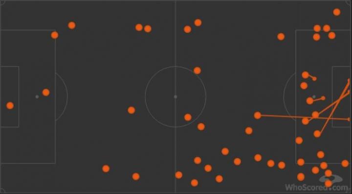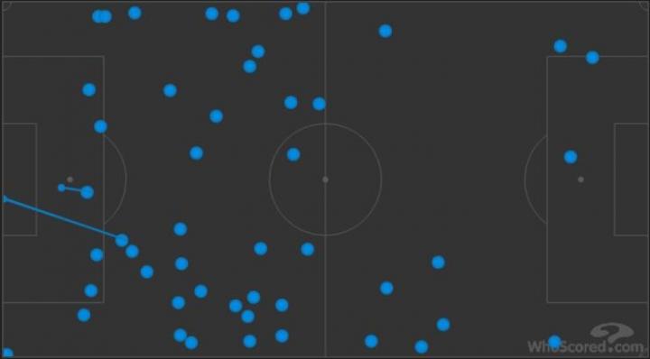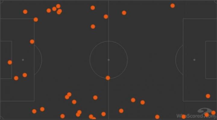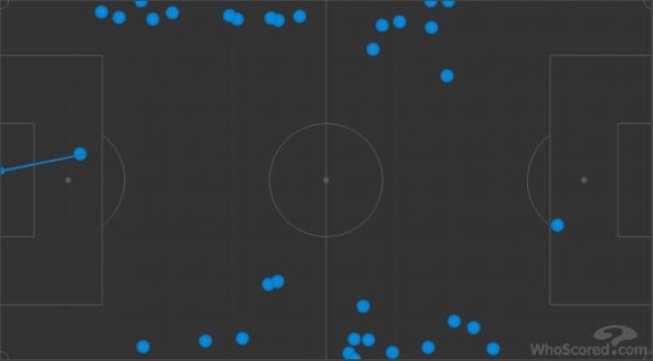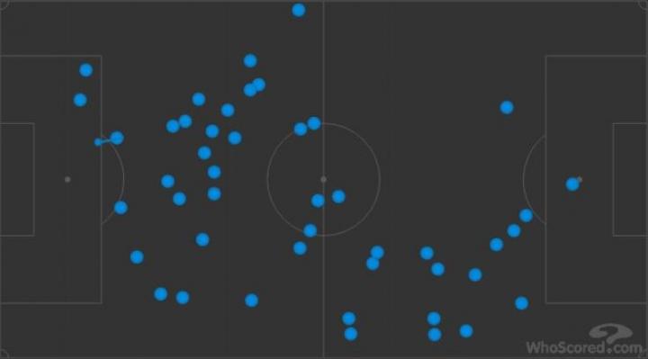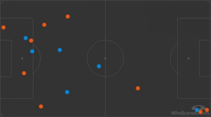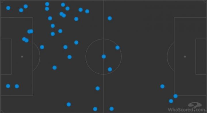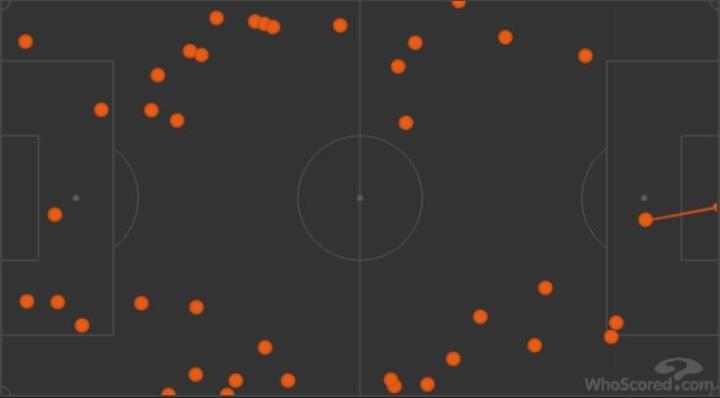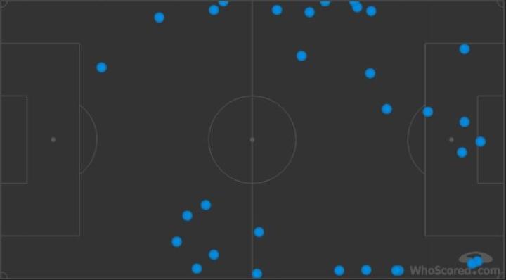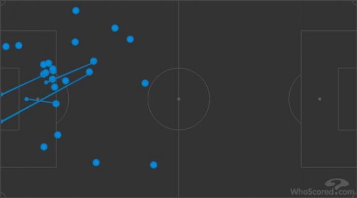 (图)国际米兰边后卫68分钟后触球点,同样助攻加大