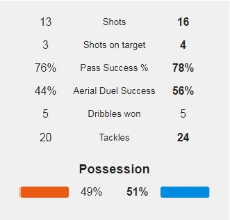 本场比赛从数据上看双方势均力敌,国际米兰在上半场通过更强的球员实力和奔跑逼抢占据主动,下半场皮奥利通过换人调整扭转局势,斯帕莱蒂最后的换人把比赛带入互爆状态,最终抓住机会取得胜利。