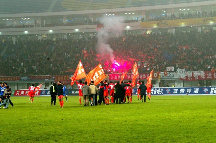 1995年11月26日,在南京的五台山体育场,济南泰山2-0爆冷击败当赛季的联赛冠军上海申花。泰山的一高一快(宿茂臻、唐晓程)碰上了申花的抢逼围。申花队球星云集,在甲A联赛中申花队曾以4-0和3-1击败泰山队,比赛之前没有人看好泰山队,能够闯入决赛已经算是相当意外的成绩。快马唐晓程在开场四分钟便攻破申花队球门,现任泰山队主帅的李霄鹏再次攻破申花球门,泰山队捧得职业化后首座足协杯冠军奖杯。