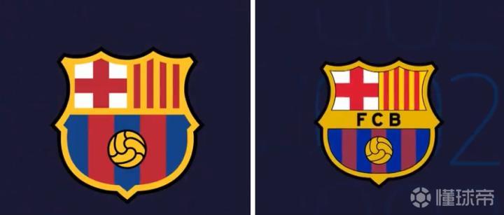 巴萨新旧队徽对比,左侧为新队徽。