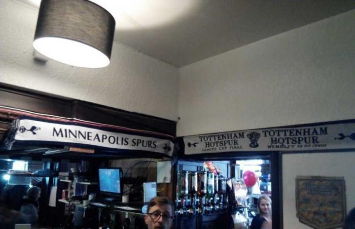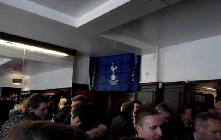 之后,我来到了球场旁的一家球迷酒吧里,这家酒吧只允许持有比赛球票的球迷进入,算是赛前供热刺球迷们小嗨一下的预热场所。面对满满一屋子的热刺球迷,我的心情跟个在逃重犯差不多,生怕暴露身份,惨遭灭顶之灾。但这种感觉也是平日里很难体会到的,所以在担心之余竟然还有一点儿酸爽。