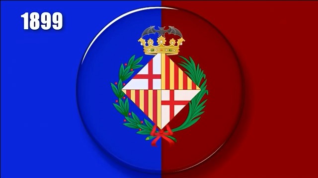 1899年10月22日,在巴塞罗那俱乐部的第一次会议里,这家俱乐部的第一款队徽正式确认。这款队徽采用了巴塞罗那市徽的四边菱形的标志,加泰罗尼亚位于西地中海地区,皇冠上方的蝙蝠则是阿拉贡王国重要城镇地区徽章的特有特征。这枚队徽的两侧有着两条树枝,一条为桂树枝,一条为棕榈树树枝,这象征着胜利与冠军。