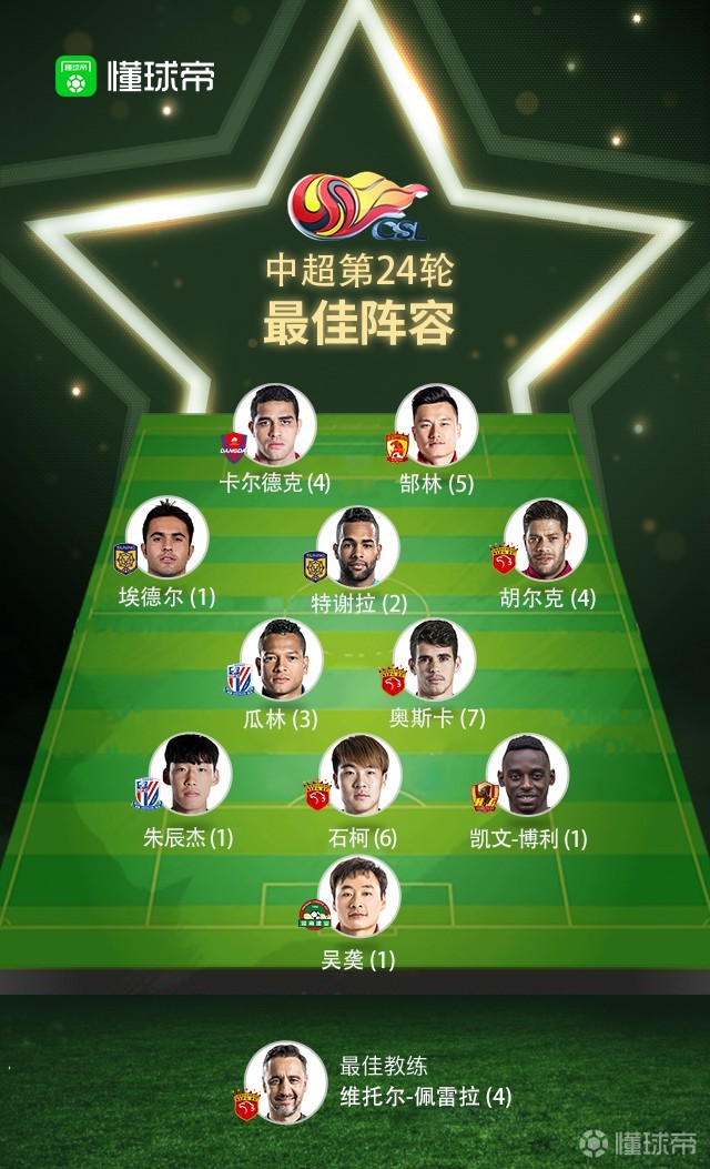 大家好,懂球帝中超第24轮最佳阵容暨MVP提名候选揭晓啦!参与中超当轮MVP最终评选的球员由懂球帝从最佳阵容中直接选出,被选出的五名球员进入最终的票选环节,球迷投票、专家投票以及懂球帝编辑部投票在最终评选中分别占60%、30%及10%的比例。在决定参与投票的五名球员时,希望大家踊跃投票,支持你心中的中超MVP!