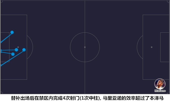 (本泽马掩护,马里亚诺攻门,后者需要队友的支援。)