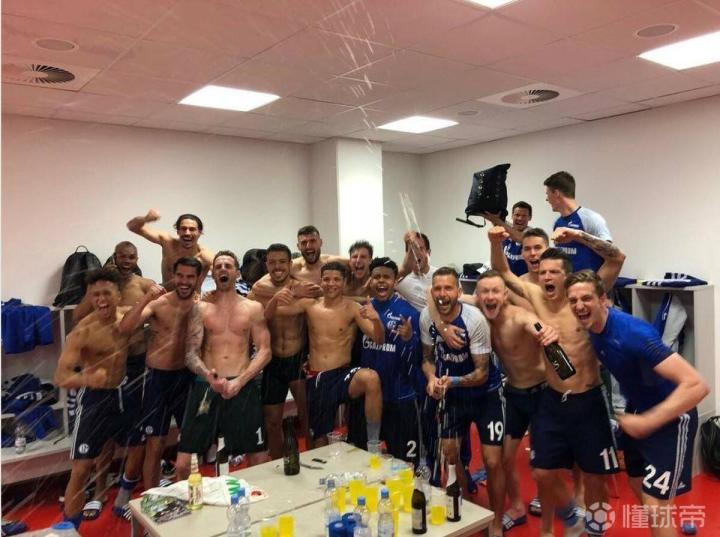 (沙尔克全队在上个赛季夺得第二后更衣室庆祝的合照)