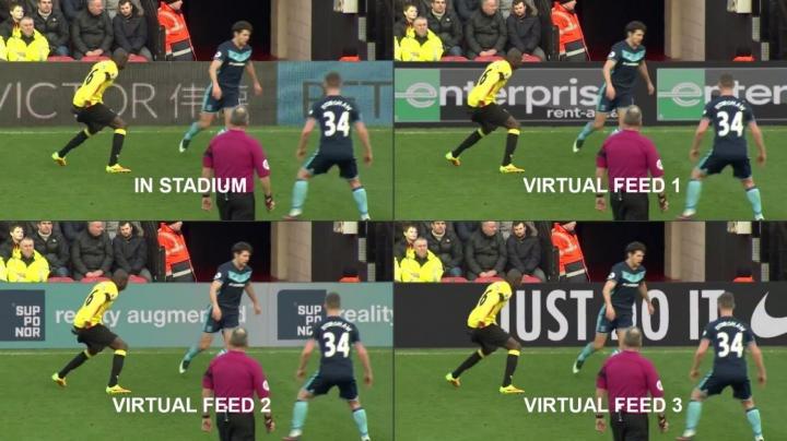 这一次,应运而生的新技术叫做虚拟科技。目前在足球场上出现过的虚拟广告技术可以分为两种:虚拟标识(Virtual Signage)和订制转播(DBR)。