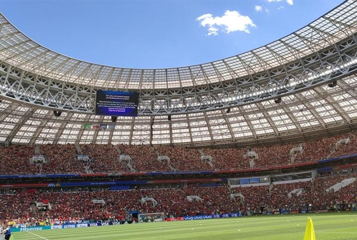 (图)这是我世界杯期间在卢日尼基球场的实拍,注意下方那些熟悉的品牌