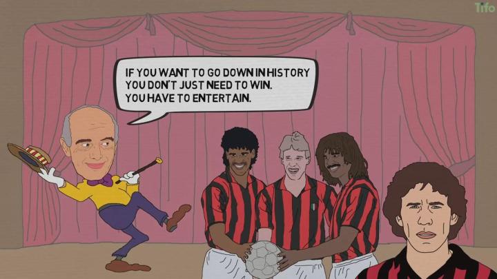 在萨基到来之前,米兰20年来只赢得了一个意甲冠军。虽然球员才华横溢,球队却表现不佳,于是萨基首先要做的就是激励他们,让全队拧成一股绳。