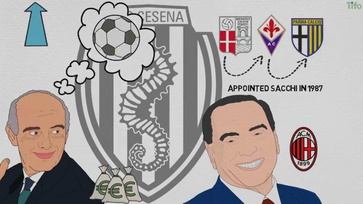 帕尔马凶猛的高强度压迫给米兰老板贝卢斯科尼留下了深刻的印象。他发现这个人与众不同。因此,在1987年,他力排众议,无视那些对萨基的执教经历不信服的人的怀疑,任命萨基担任主教练。