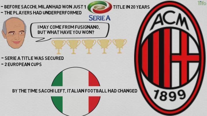 当萨基离开的时候,他们硕果累累,赢得了一个意甲冠军两个欧冠冠军。此时的意大利足球已经被改变了。