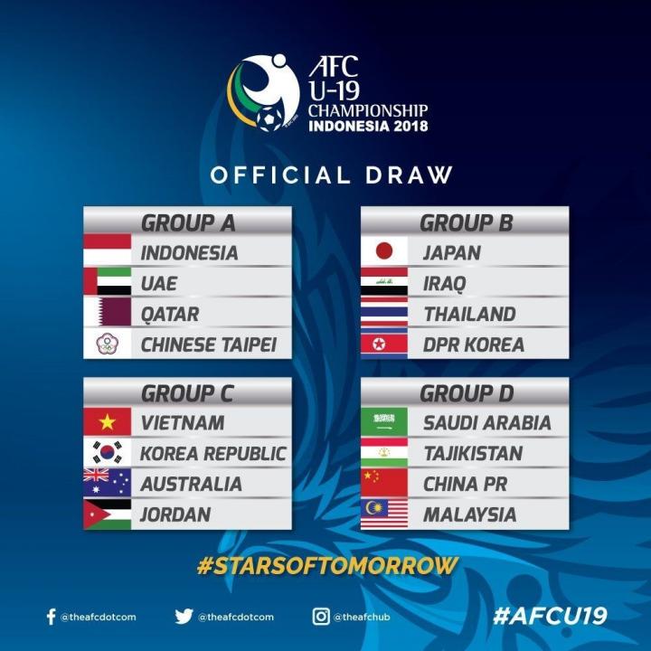 中国U19国家队、沙特阿拉伯、塔吉克斯坦、马来西亚则被分在了D组。小组前两名获得出线资格,进入半决赛的四支球队将获明年波兰世青赛(U20世界杯)的名额。