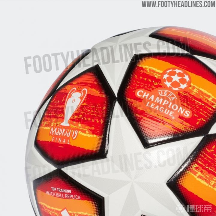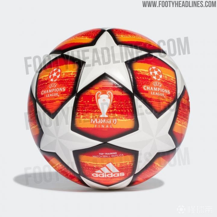 著名足球装备网站footy headlines曝光了2018/19赛季欧冠决赛比赛用球的谍照,与小组赛阶段使用的蓝白配色不同,这款决赛用球采用了橙红色为主色。