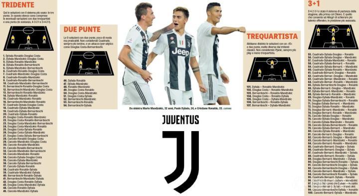 《米兰体育报》近日专栏分析了尤文图斯的锋线储备,该媒体表示斑马军团有多达107种进攻选择。