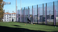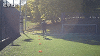 我们带球朝向中间的标志盘,进行一个二过一配合,然后第一脚触球向要去的方向,紧接着带球转身,所以带球的时候我们要控制好球,这样会更有效,还有一点很重要,那就是两只脚都要练,每一个方向左右脚都要用,训练60秒,休息一下,重复三组。