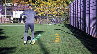 第二个训练是横向标志盘带球,我们之前已经提到,边后卫也有进攻职责,所以必须要具备犀利的控球能力。