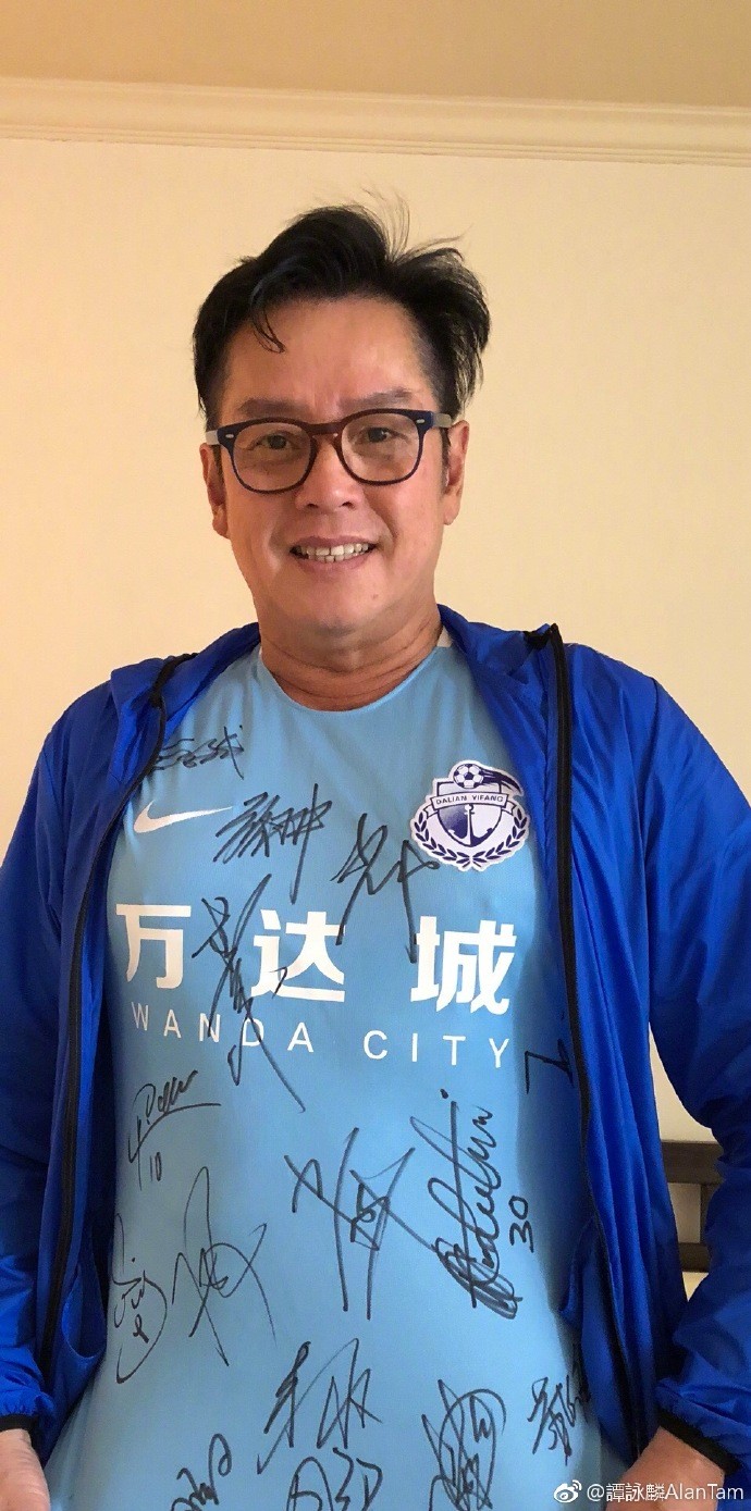 北京时间今天下午,中国香港著名歌手谭咏麟更新了自己的个人微博,他晒出了自己身穿中超球队大连一方球衣的照片,球衣上还写满了一方球员们的签名。他表示,虽然他并不确定球衣上的签名谁是谁,但他也很珍惜这件球衣。