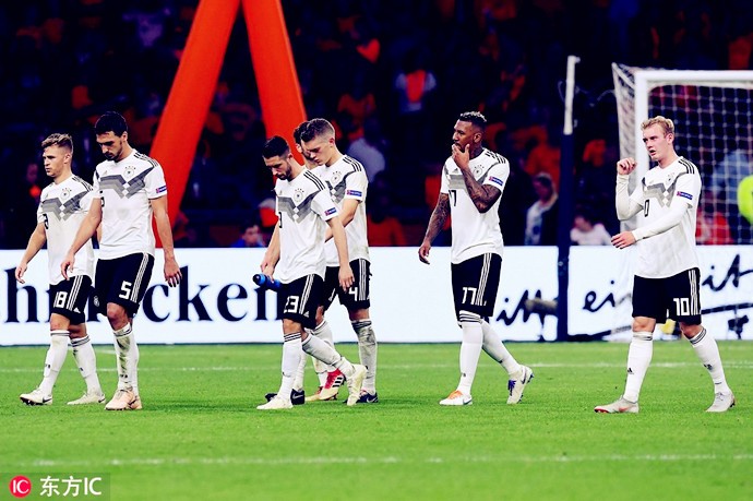 做客阿姆斯特丹的比赛是勒夫执教德意志战车的第168场比赛,他超越了传奇主帅赫尔贝格成为史上执教德国队场次最多的教练,在这样一个敏感的时间节点遭遇“里程悲”,勒夫心中的苦楚和愤懑可想而知。德国队的冠军阵容已经出现了不可逆的下滑趋势,乌特、舒尔茨、金特尔和维尔纳等新人没有表现出取而代之的能力,勒夫很难通过对位换人填补这些漏洞。战平法国时表现出来的新气象瞬间灰飞烟灭,德国队的重建已经时不我待,他们需要的是一次自上而下的全方位变革。