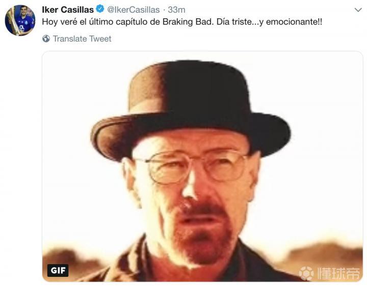 近日正值国家队比赛日,卡西也获得了休息的时间。卡西在推特上写道:“今天我就要看绝命毒师(Breaking Bad)的最后一章,我很难过,但也激动!!”