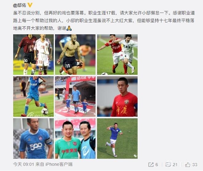 结束17年生涯,邸佑宣布退役