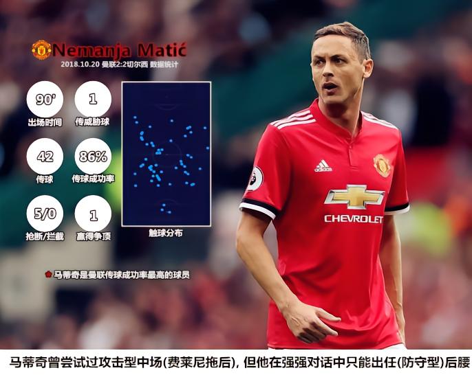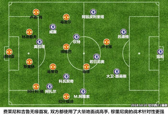 减少一名后腰、增加一名前锋,促使穆帅在客场冒险的原因有两点:一是由于关键球员的伤停,费莱尼缺阵削弱了“巨人阵”的威力,曼联在进攻中关注的不是“高度”而是“速度”。在本场搭档两翼的马夏尔和拉什福德都是个人向前能力较强但配合意识稍逊的球员,曼联的前场需要一位连接者沟通各个区域内的攻击手,林加德的缺席意味着球队前场粘合度和流动性下降,在逆转纽卡一役中表现出色的马塔是最为合适的替代品。二是切尔西在国际比赛日之后的战绩并不好,曼联只要能够在上半场咬住比分,就有机会在对手体能下降时发动反攻,“速度”战更多地来源于地面进攻,也需要更多的球员参与到配合之中,使用4231/442驱动防反要比三中场的433/451更加适合。