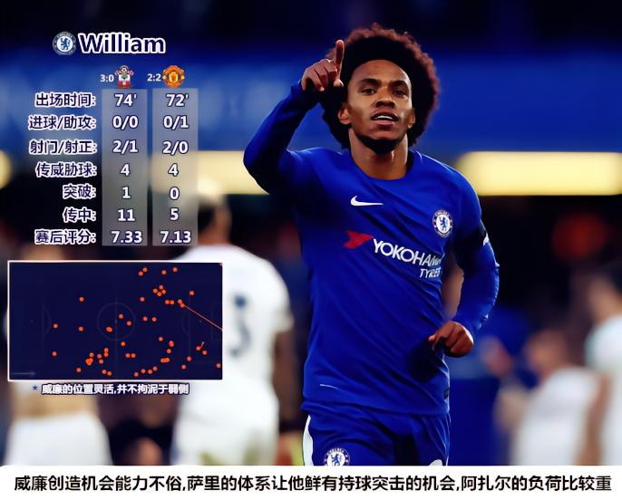切尔西阵中拥有六名西班牙球员(此役出场五人),这是除狼队的葡萄牙帮之外规模最大的外援帮派。大卫-路易斯、若日尼奥、威廉和阿扎尔等人构成球队的框架,但西班牙球员很好地发挥了粘合剂的作用,他们是最能够理解萨里战术意图的球员,他们能凭借出色的意识与上述几位核心球员的技术能力相得益彰。努诺-桑托的球队在做客梦剧场时依靠出色的传控压制了曼联,萨里的蓝军在整体配合熟练度方面无疑要更胜一筹。