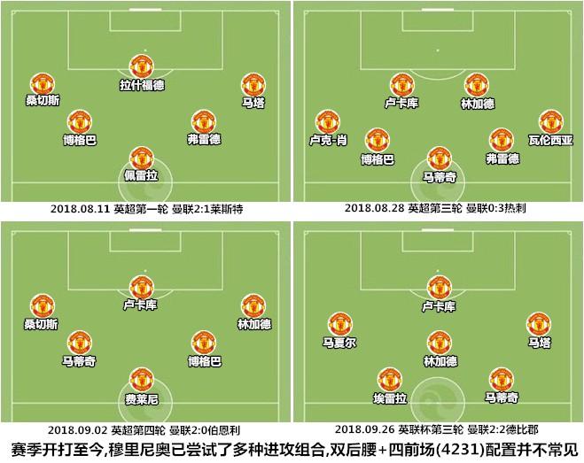 从赛季开打至今,曼联的阵型和主力配置始终在不断变化中,穆里尼奥先后使用过包括433、4312和352在内的多种阵型。狂人在阵型布局和人员配置方面总体上趋于保守,他只在联赛杯对阵德比郡的比赛中使用过拥有四名前场攻击手的4231阵型,此役是他首次在联赛中使用这种偏重于进攻的体系,狂人显然是希望通过胜利在老相识面前证明自己。