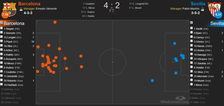 进攻上可以靠运气来凑,就算施特根连续上演两连扑神迹,也防不住门将的天敌——来自队友的变线。防守上就算挡不住的梅西受伤,神勇的苏牙拼尽全力后被换下场,拉基蒂奇却依然可以利用远射攻破老东家的球门。穆里尔将最终的比分定格为4-2,已经是塞维利亚值得骄傲的努力。