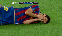 (图)布斯克茨在摔倒后捂脸偷看裁判判罚的动作曾引起了巨大争议
