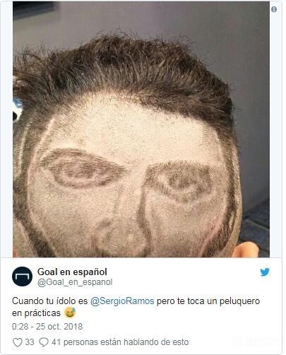 足球网站Goal在周三的推特上发了这张发型图片并写道:“当你的偶像是拉莫斯,但你却只有一个实习美发师。”