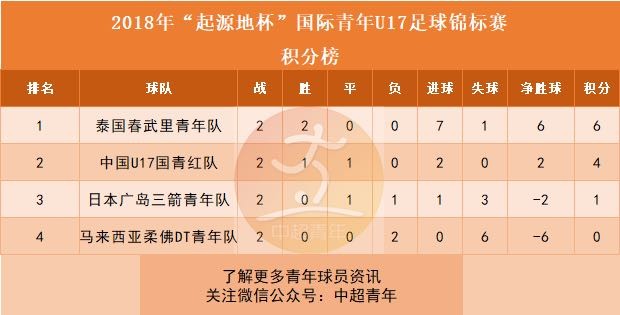 10月27日晚上19点35分,中国U17男足红队将迎来最后一个对手泰国春武里青年队,后者目前两战全胜,排名积分榜第一。如果中国队能够战胜春武里,将会夺得本届“起源地杯”冠军。