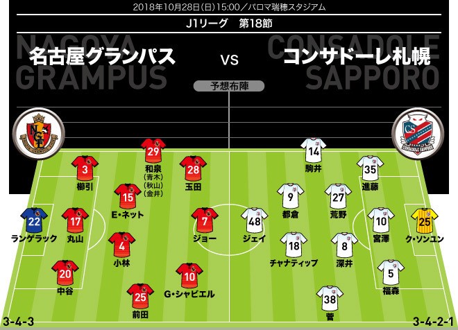 本场名古屋与札幌的比赛为第18轮补赛,由于12号台风的影响,当时这场比赛被迫择日重赛。