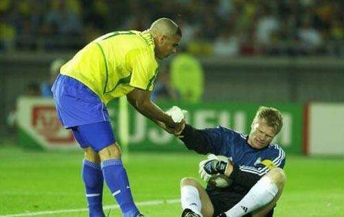 风水轮流转,韩日论剑开始之前,齐达内的江湖威望已将达到了巅峰,可水满则溢,月盈则亏。可是他亲手缔造的江湖霸业在巅峰期轰然崩塌,迪奥普的一剑让高卢人黯然神伤。此时挫折后的罗纳尔多迎来了自己的高光时刻,“桑巴太岁”此时的武功已经褪去年轻时的桀骜之气,变得更加犀利致命令人防不胜防。巴西师兄弟们的竭力防守,为以他为核心的“巴西三侠”提供了一展身手的机会。欧洲红魔比利时的铁壁合围被里瓦尔多辕门射戟一举击落;“玉面飞刀”贝克汉姆、“风刃郎君”欧文联手施展杀招让英格兰取得领先,却也经不住罗纳尔迪尼奥的会心一击;突厥断门刀的群豪们纵使如有神助,也败在了罗纳尔多的剑尖一挑……