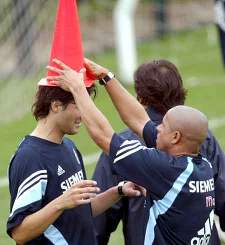 (值得一提的是索拉里曾随皇马来到中国,图中被卡洛斯戏耍扣帽子的就是索拉里)