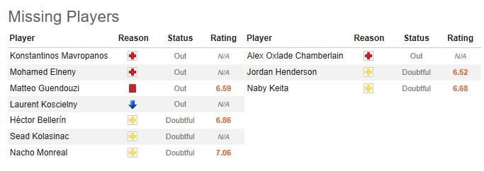 在拿到连续13场不败的成绩之后,真正检验埃梅里的时候到了。本场比赛,科斯切尔尼、马夫罗帕诺斯和埃尔内尼将会因伤缺席,蒙雷亚尔、科拉希纳茨、贝莱林和帕帕斯塔索普洛斯还需等待队医的出场许可,贡多齐则因为周中联赛杯的红牌停赛。阿森纳防线人员紧缩,要应对利物浦的魔鬼攻击线恐怕会力有不逮?