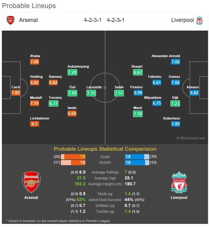 在Whoscored给出的赛前预测图中,与上轮比赛相比阿森纳将做出多处调整:伤愈复出的切赫重回首发,利希施泰纳将顶替受伤的贝莱林,拉姆塞将顶替停赛的贡多齐。但依照赛前的训练图,科拉希纳茨和贝莱林均伤愈归队,因此笔者认为,科拉希纳茨和贝莱林均能首发并回到他们最熟悉的左右边卫,扎卡将回到中场搭档托雷拉,周中颇为灾难性表现的切赫应该不会撼动如今莱诺的首发位置。