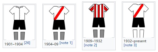 河床从1905年开始参加阿根廷联赛,从第三级别踢起,那时球队已经采用白色上衣,上有一条红色斜带的设计,一说这一设计是出于狂欢节庆祝,另一说则是为了和另一支纯白上衣的球队区分开来,不管怎样,这一经典设计,沿袭至今。