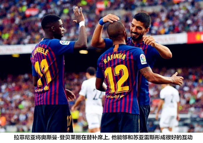 (奥斯曼-登贝莱在开场后首次触球就制造了威胁,巴萨希望利用他的快速突破持续消耗对手,不断地将国米的阵线拉回后场,可惜法国人在随后的比赛中出彩的镜头不多。)