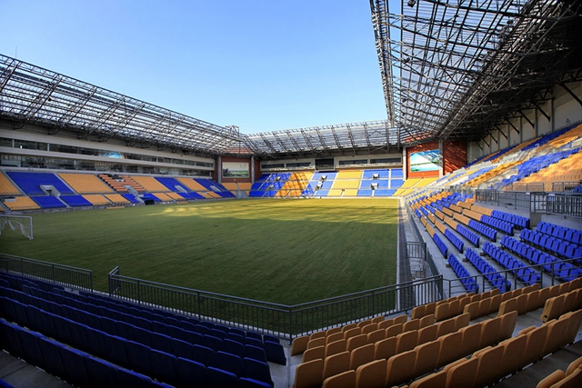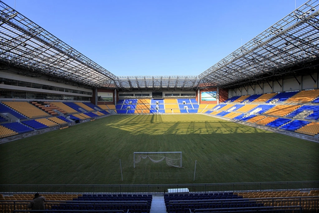 足球场占地面积7.5万平方米,总建筑面积6.1万平方米。可同时容纳37000名观众。主看台共分4层,70%的坐席可以被顶棚遮盖。