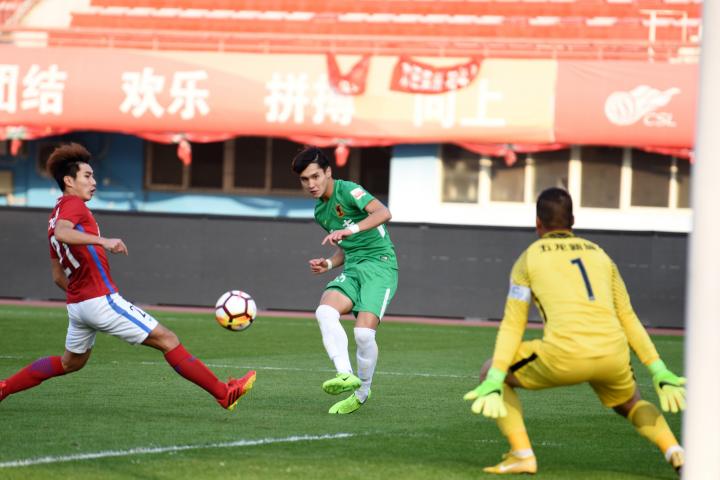 第35分钟,张源前场抢断后推射破门,2-0;
